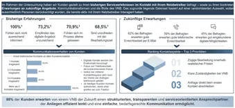 Kunden erwarten einfache, transparente und zügige Prozesse – vor allem aber eine klare, verlässliche Kommunikation. Besonders wichtig ist ihnen, dass der VNB bei Änderungen oder Rückfragen aktiv und verständlich informiert. Perspektivisch wird erwartet, dass sich der VNB zu einem verlässlichen Servicepartner entwickelt: mit klar definiertem Leistungsversprechen, proaktiver Kommunikation und Prozessen, die sich an den Bedürfnissen der Kunden ausrichten.