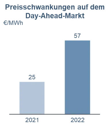 Der Marktpreis hat sich seitdem zwar wieder in Teilen normalisiert bzw. ist deutlich gesunken, die Volatilität – also die täglichen Schwankungen des Strompreises an der Börse – aber ist geblieben. Durch den weiteren Ausbau der erneuerbaren Energien in Deutschland wird es dabei dauerhaft zu strukturellen Veränderungen kommen. Konkret geht der Großteil der Analysten davon aus, dass die Volatilität in den nächsten Jahren weiterhin hoch bleiben wird.